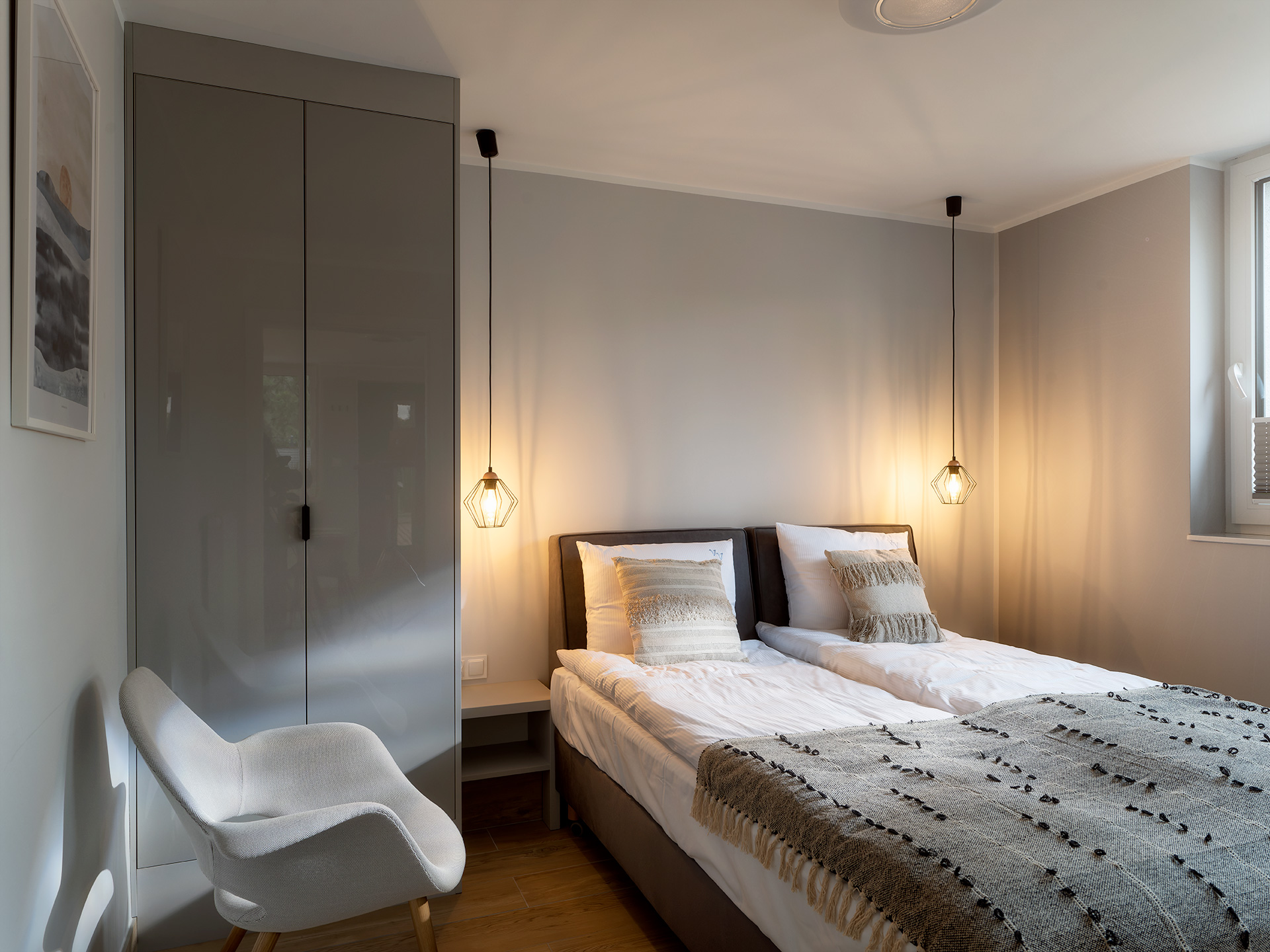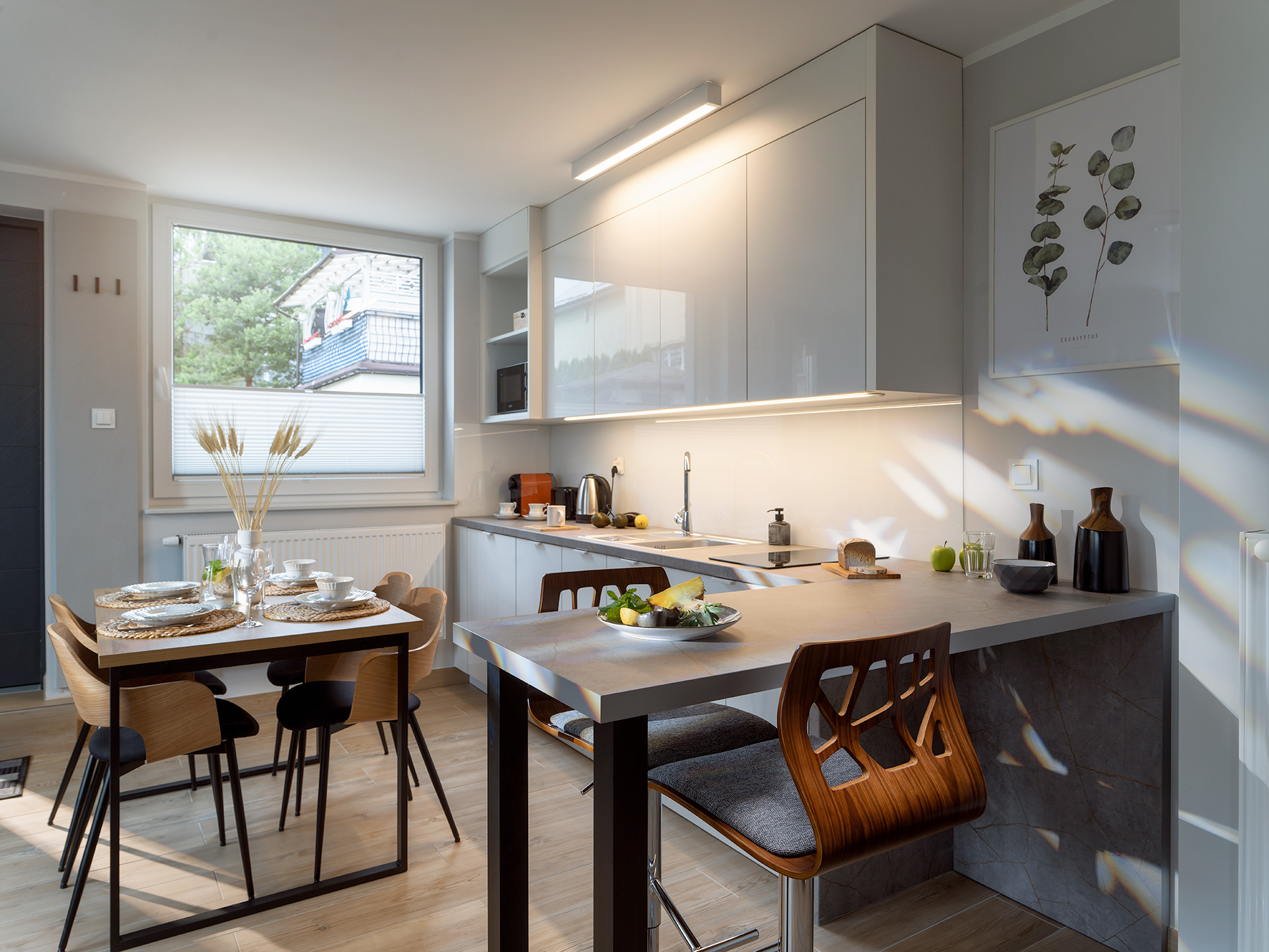 Przy projektowaniu apartamentów stawialiśmy przede wszystkim na wygodę oraz wysoki poziom funkcjonalności. Z tego względu wszystkie apartamenty znajdujące się w naszym obiekcie są w pełni wyposażone. Można w nich znaleźć między innymi: